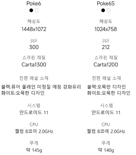 콘트라스트와 반응 속도가 Poke6 S 보다 Poke6가 더 좋았기 때문입니다. 잘 보시면 ppi 차이가 88 정도 납니다.